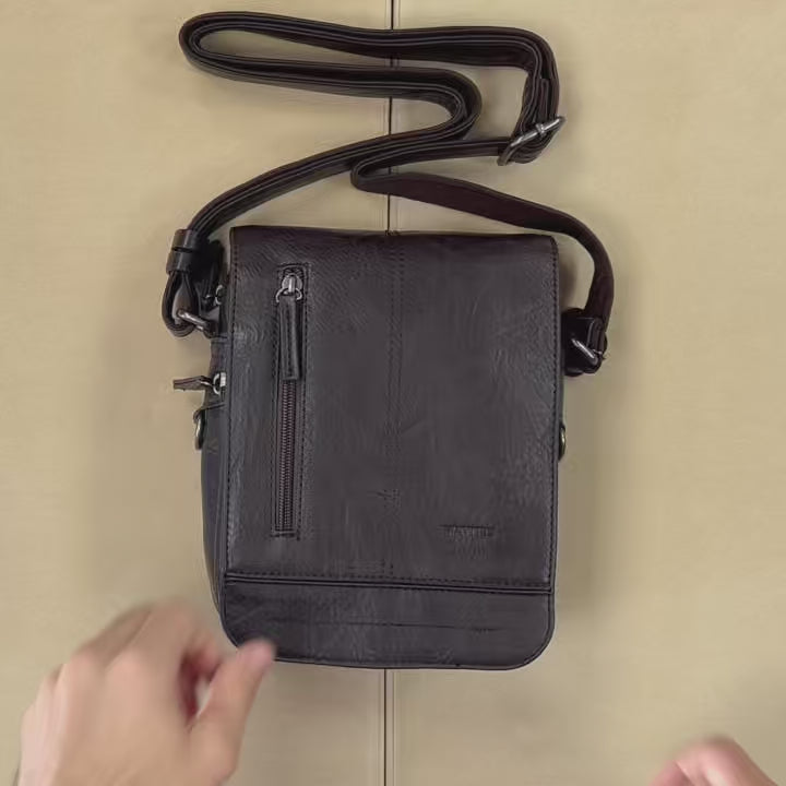 Sí. Es ligera y la correa regulable se ajusta rápido para llevarla cruzada o al hombro según tu altura o abrigo. El formato evita bultos en cintura y deja bolsillos del pantalón libres.